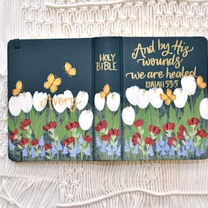 I do not provide any type of warranty. Reason why... once the Bibles leave my shop I have no idea how they are being treated. Painted Bibles will develop scratches and scuffs if not properly cared for. I do recommend using a Bible carrying bag for daily use and transporting. Painted Bibles will show wear at the bend of the spine. Paint will develop a small hairline split over time, this can't be prevented as paint is not intended to bend. I have worked very hard to find a paint/medium blend that helps minimize the splitting. This is also the reason why I will only paint dark base colors over a dark hard cover Bible and light base colors over a white hard cover Bible. Please be sure to message me with any concerns or issues.