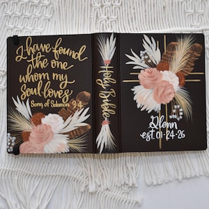 **I am happy to search for other versions that are not offered in my shop. All Bibles must be a smooth hardcover or cloth over board surface. Unfortunately a lot of versions do not come in the appropriate type of cover for painting. I am very particular about the surface type that I paint on to keep the integrity of the finished product for long term durability. I also discourage using Bibles that have a lot of embossed lettering on the front. The indented lettering or design will show even after painted. Feel free to message me regarding any Bible version question.