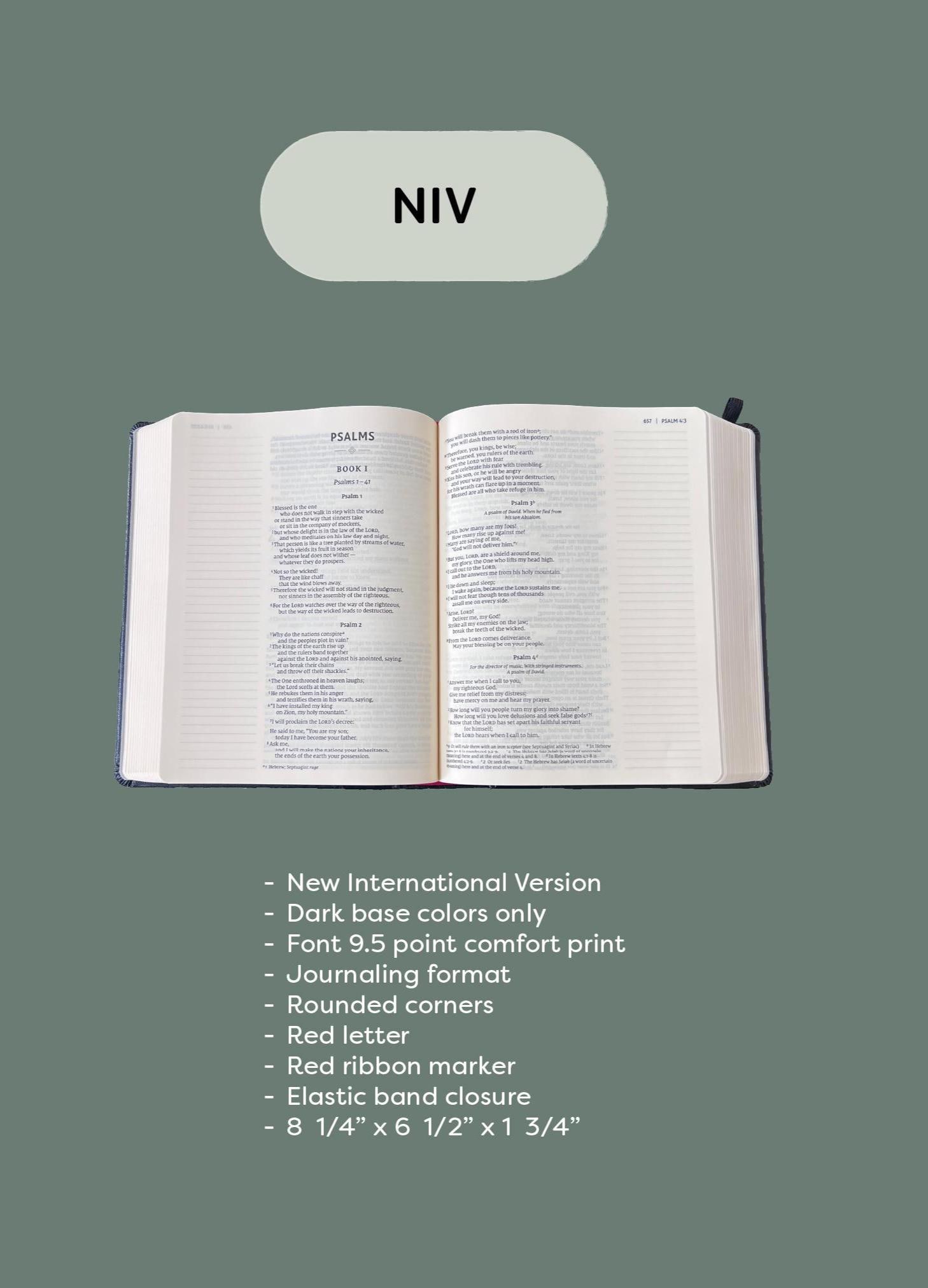 *NIV Journaling (dark base color designs only) RED LETTER ONLY 6.5 W x 8.25 T x 2 **