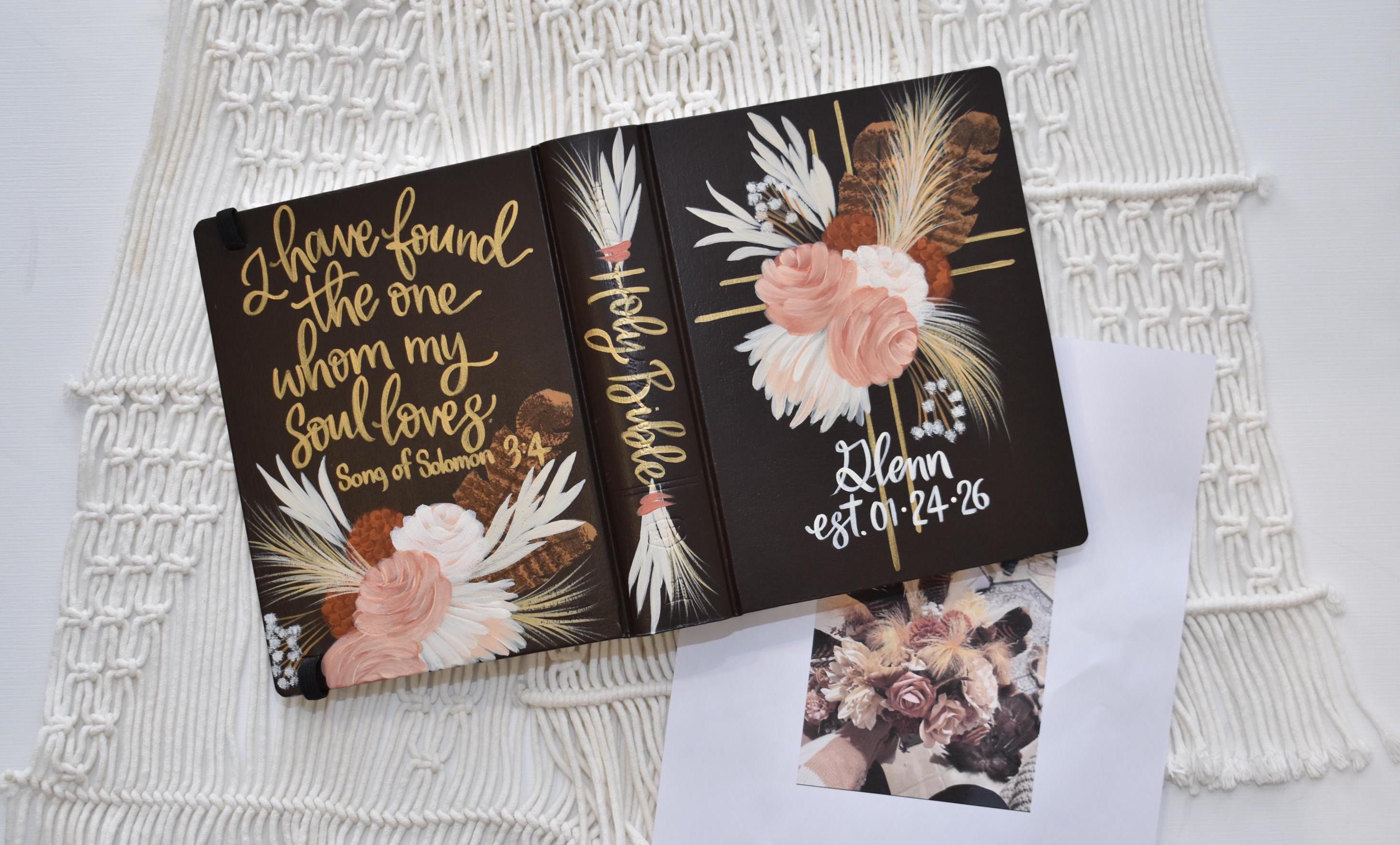 All journaling Bibles I carry in stock have a smooth cover perfect for painting. The journaling format provides extra space for note taking.