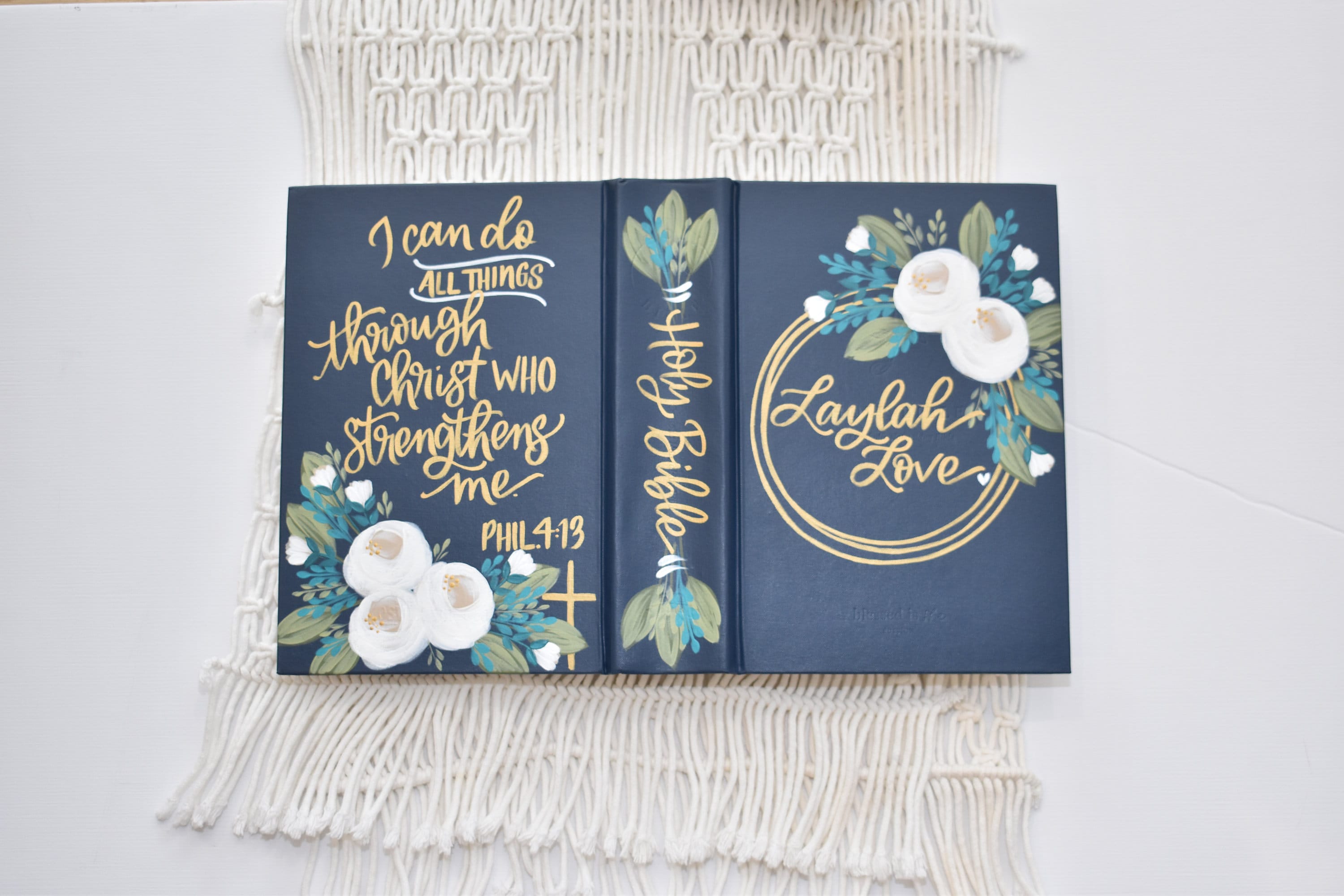 **I am happy to search for other versions that are not offered in my shop. All Bibles must be a smooth hardcover or cloth over board surface. Unfortunately a lot of versions do not come in the appropriate type of cover for painting. I am very particular about the surface type that I paint on to keep the integrity of the finished product for long term durability. I also discourage using Bibles that have a lot of embossed lettering on the front. The indented lettering or design will show even after painted. Feel free to message me regarding any Bible version question.