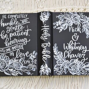 Unfortunately, I only sell the Bibles I carry in stock, and do not accept send-in Bibles. Without knowing the type of material on the Bible I can’t trust and promote the integrity of my product. I have found from experience that certain types of Bible covers do not accept paint well. Through trial and error I have fine-tuned my process and products to make sure that the Bibles made are of good quality.