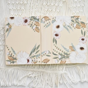 This Bible design is based in a beautiful soft cactus green with florals added in soft whites, blush peach, soft yellow, soft lavender and honey tan. Foliage is added in dark pine green, bright foliage green and basil green. White lettering is recommended for this design.