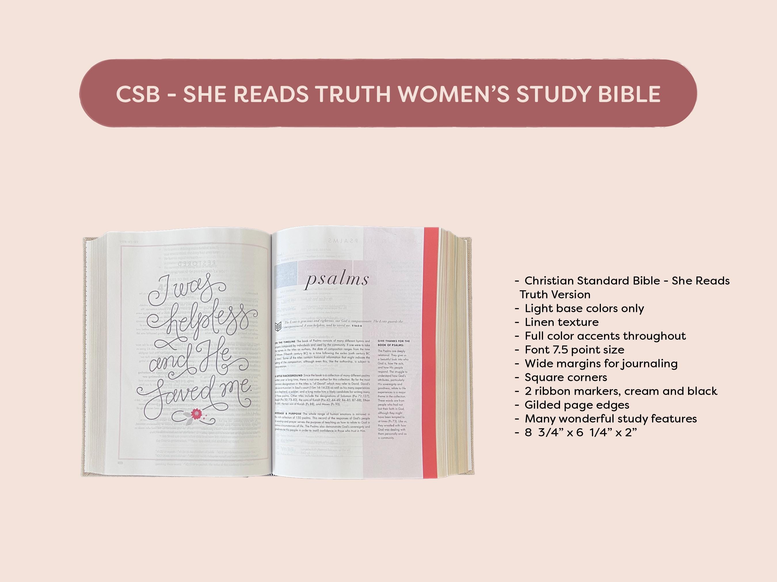 *CSB "She Reads Truth" Journaling 6.25 W x 8.75 T x 2 (light base color designs only)