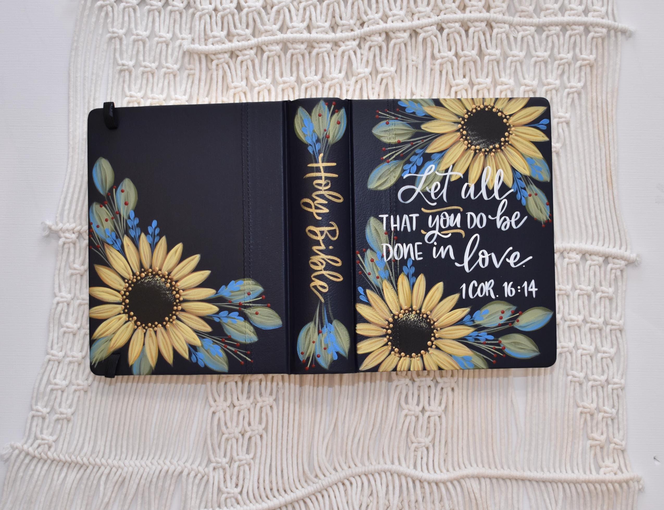 Hand Painted Bible, Sunflowers, Book Sleeve/bag, Personalized Gift
