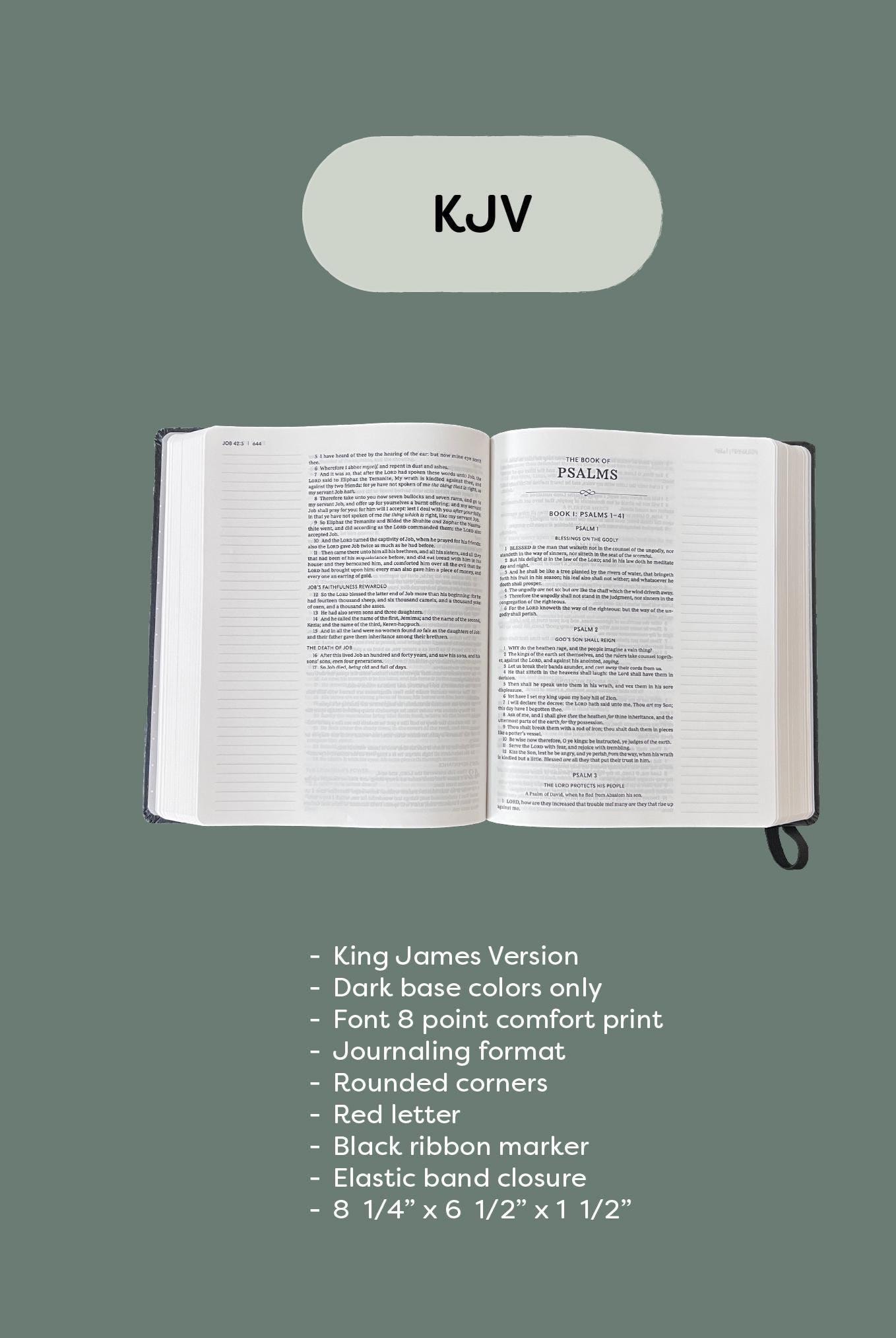 *KJV Journaling (dark base color designs only) 6.5 W x 8.25 T x 1.5 **