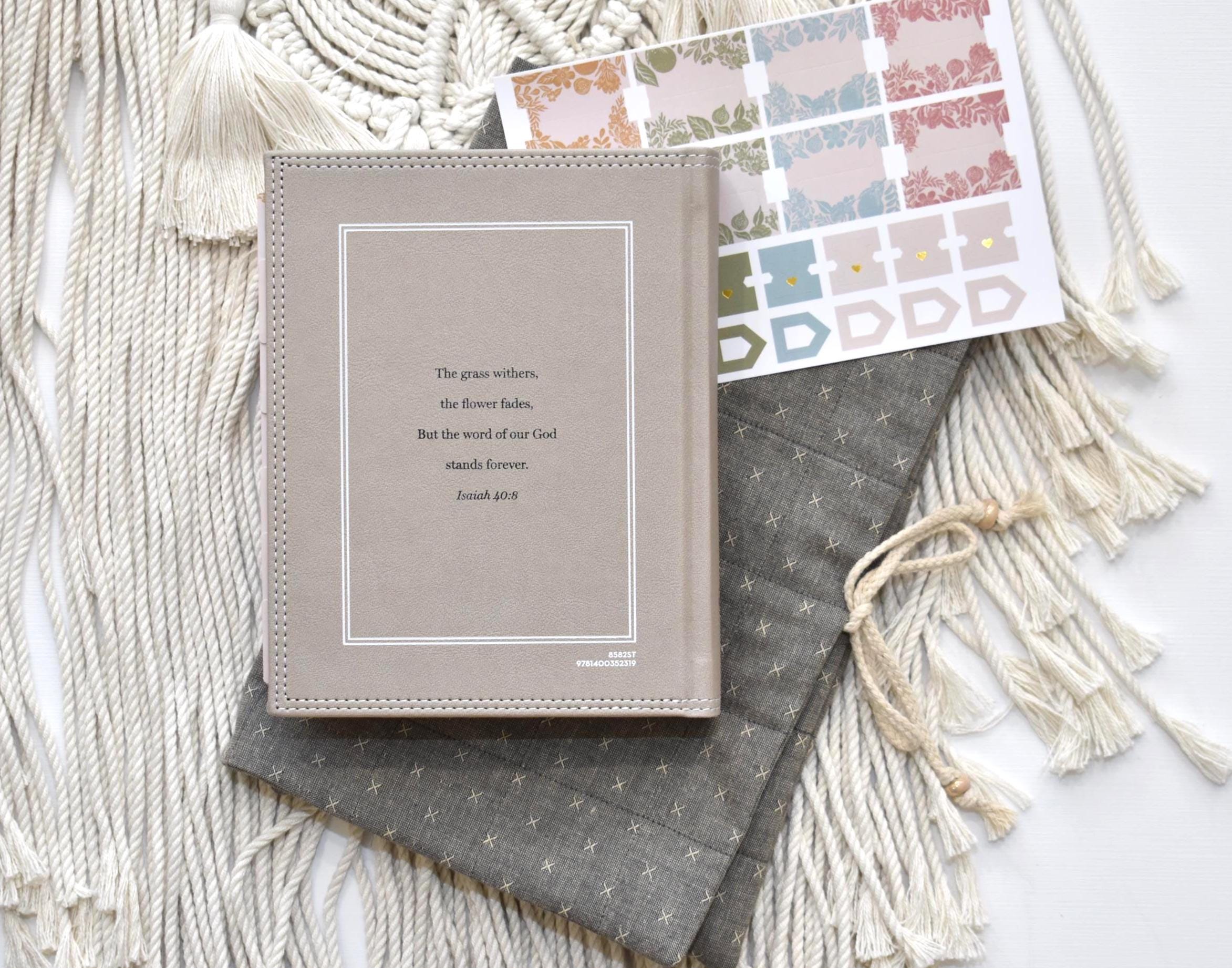 This Bible has been tabbed with a beautiful assortment of colorful florals. Bible comes with 22 additional blank sticker tabs to mark your favorite verses, etc.