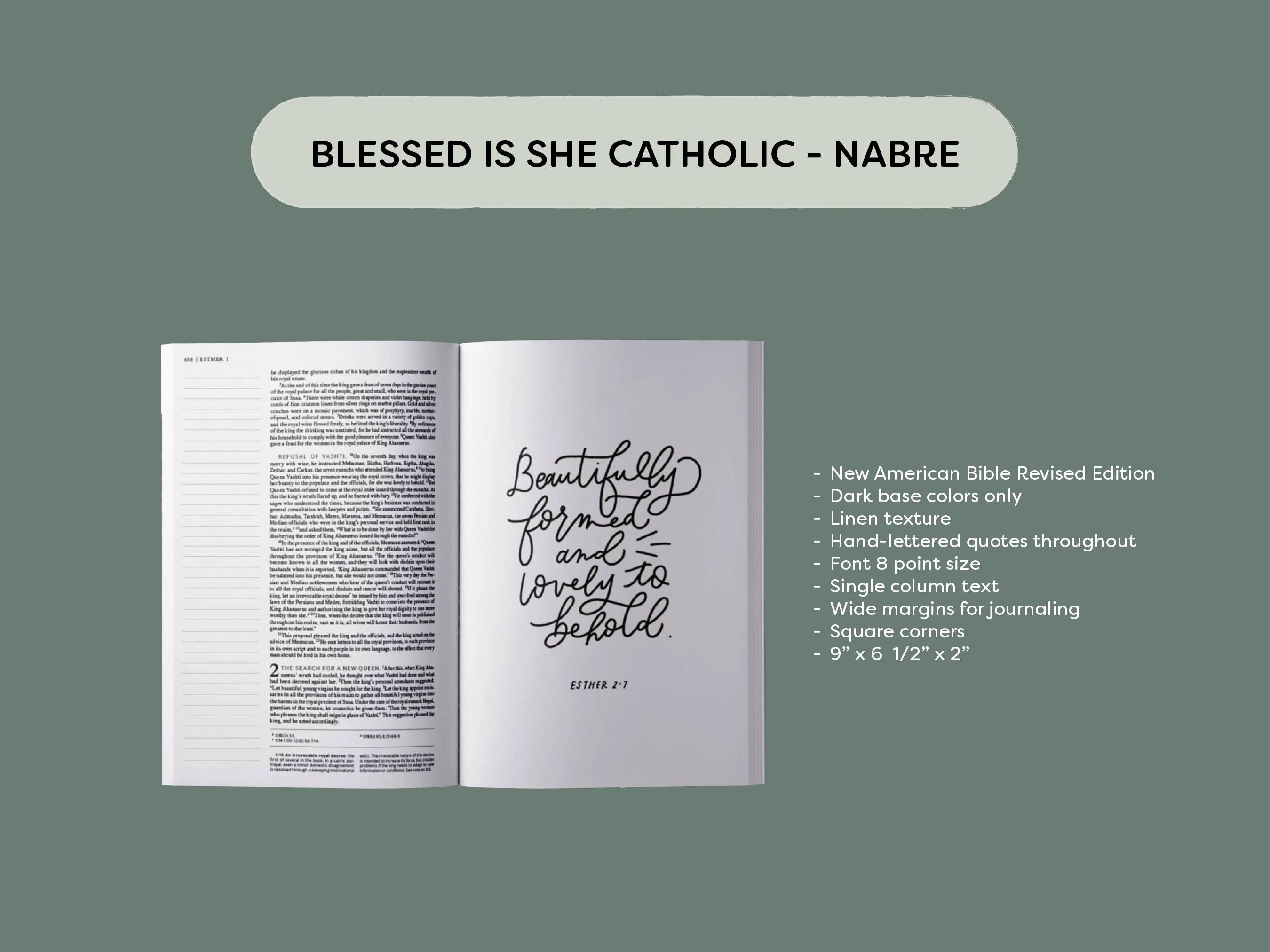 *Catholic "Blessed is She" Journaling bible (dark base color designs only) 6.2 W x 9 T X 1.9 **