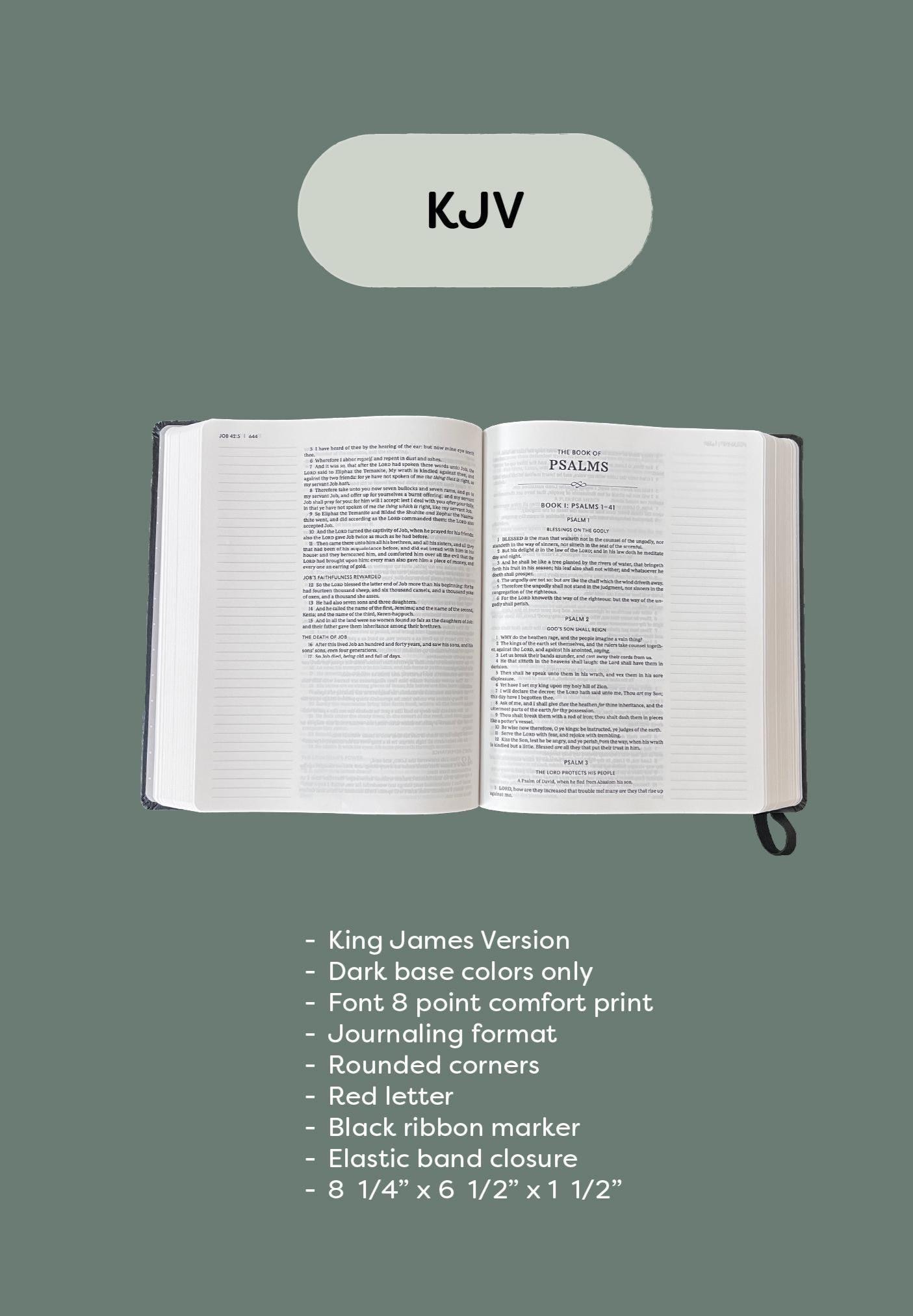*KJV Journaling (dark base color designs only) 6.5 W x 8.25 T x 1.5 **