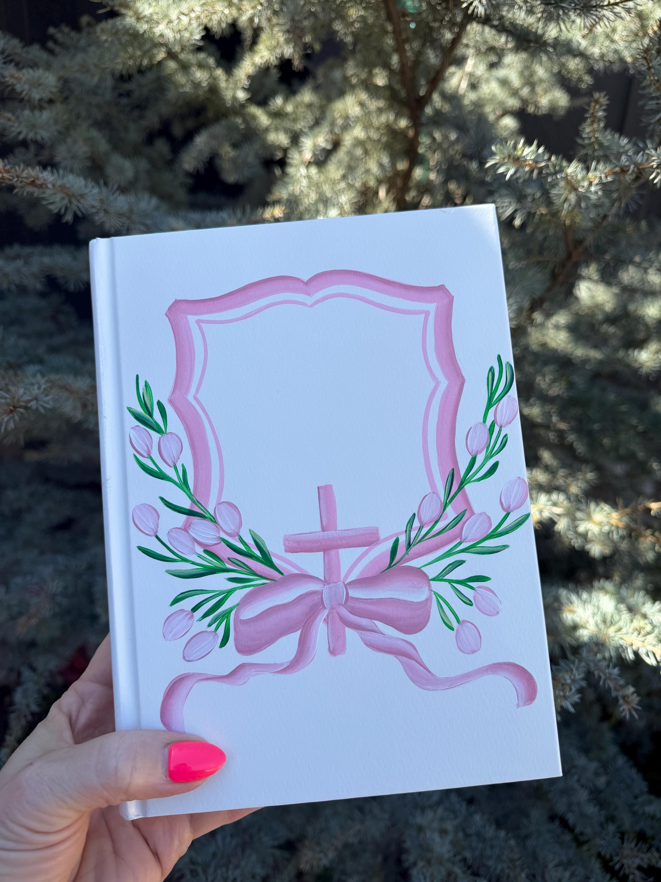 *Catholic "Blessed is She" Journaling bible (dark base color designs only) 6.2 W x 9 T X 1.9