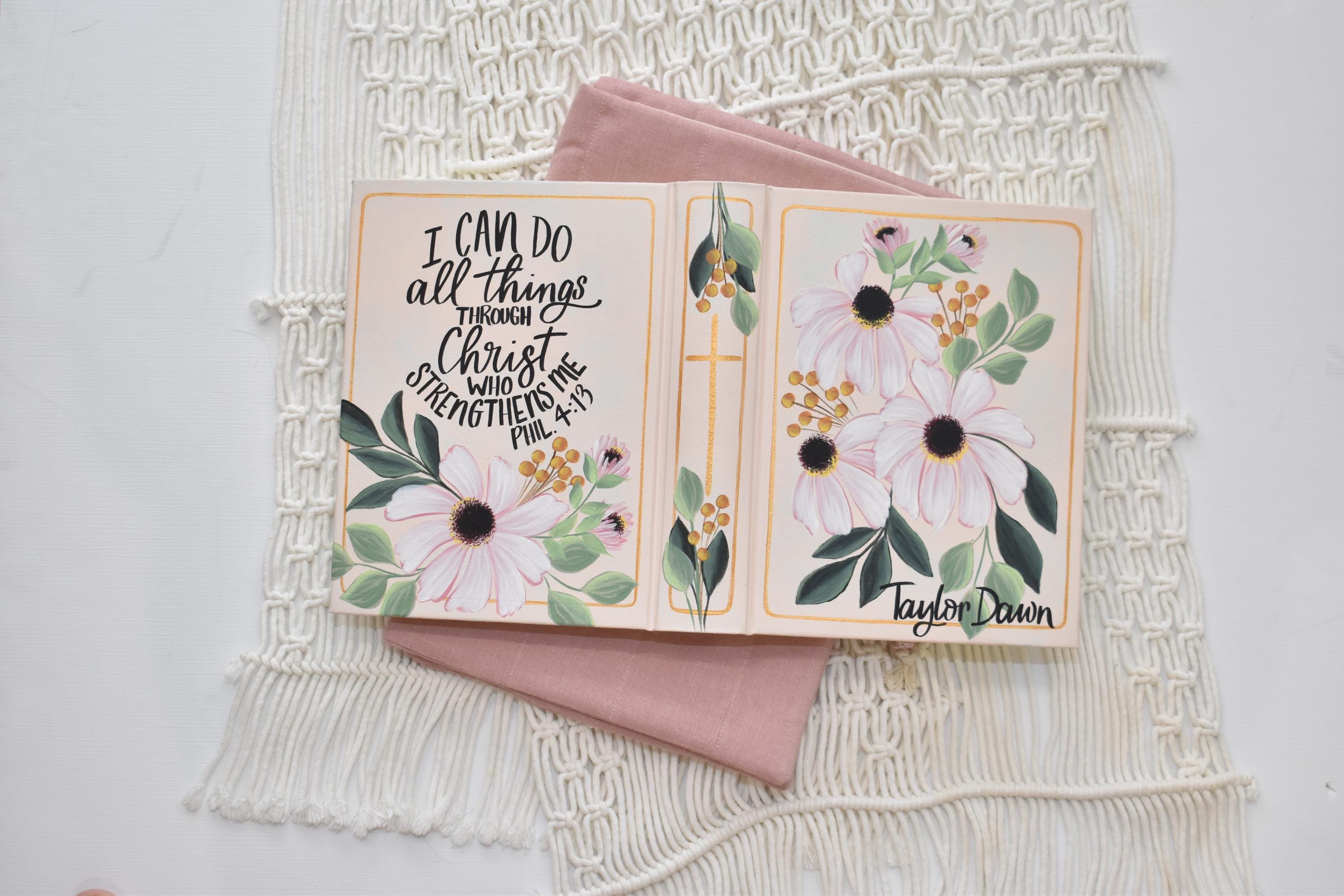 **All BIBLES ARE PAINTED CUSTOM UPON ORDER. THE ESTIMATED SHIP TIME IS SHOWN ONCE YOU ADD YOUR ITEM TO THE CART. IF YOU NEED YOUR ITEM SOONER PLEASE MESSAGE ME TO CHECK ON RUSH ORDER AVAILABILITY. RUSH ORDERS HAVE A $35 ADDED FEE AND ARE LIMITED.