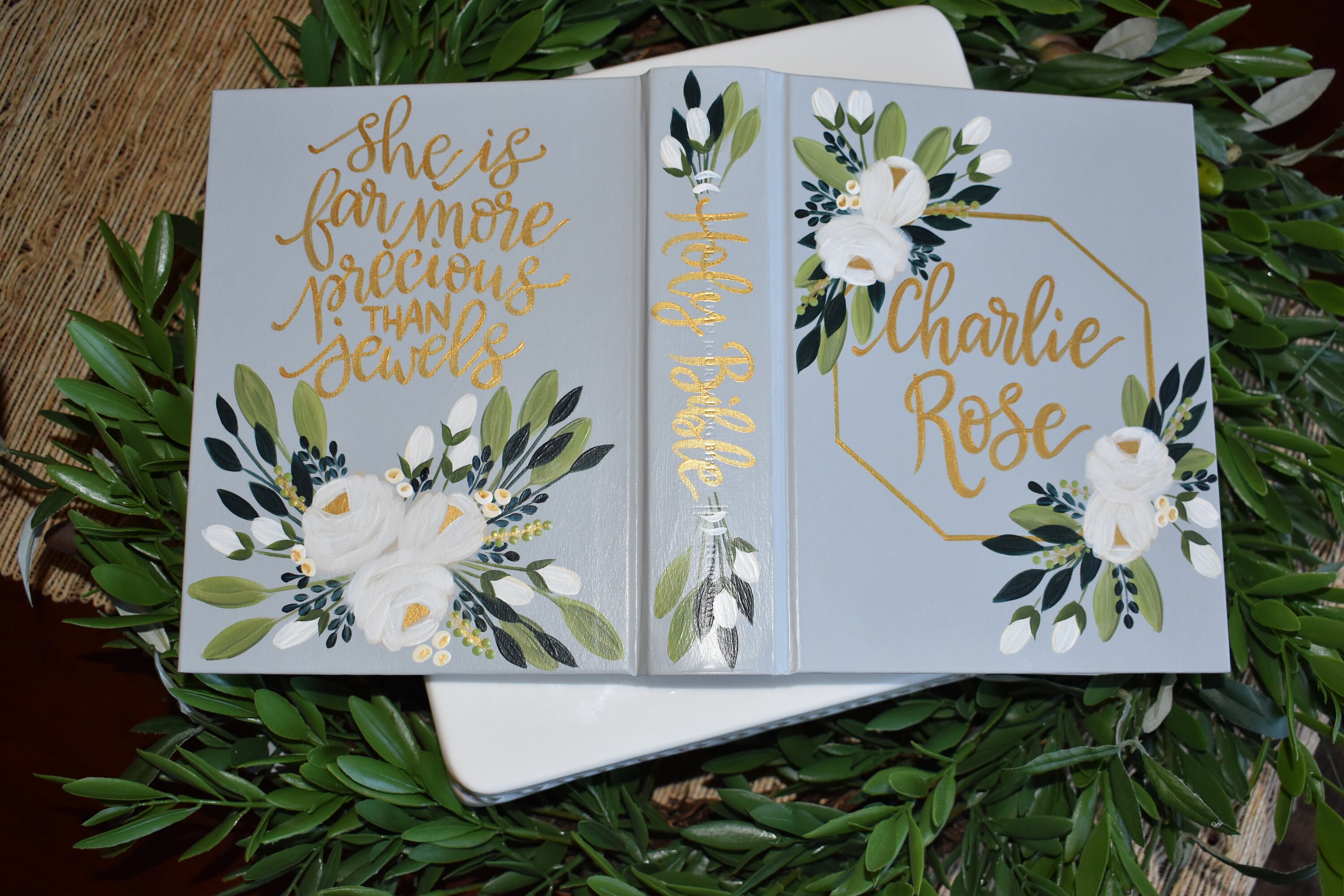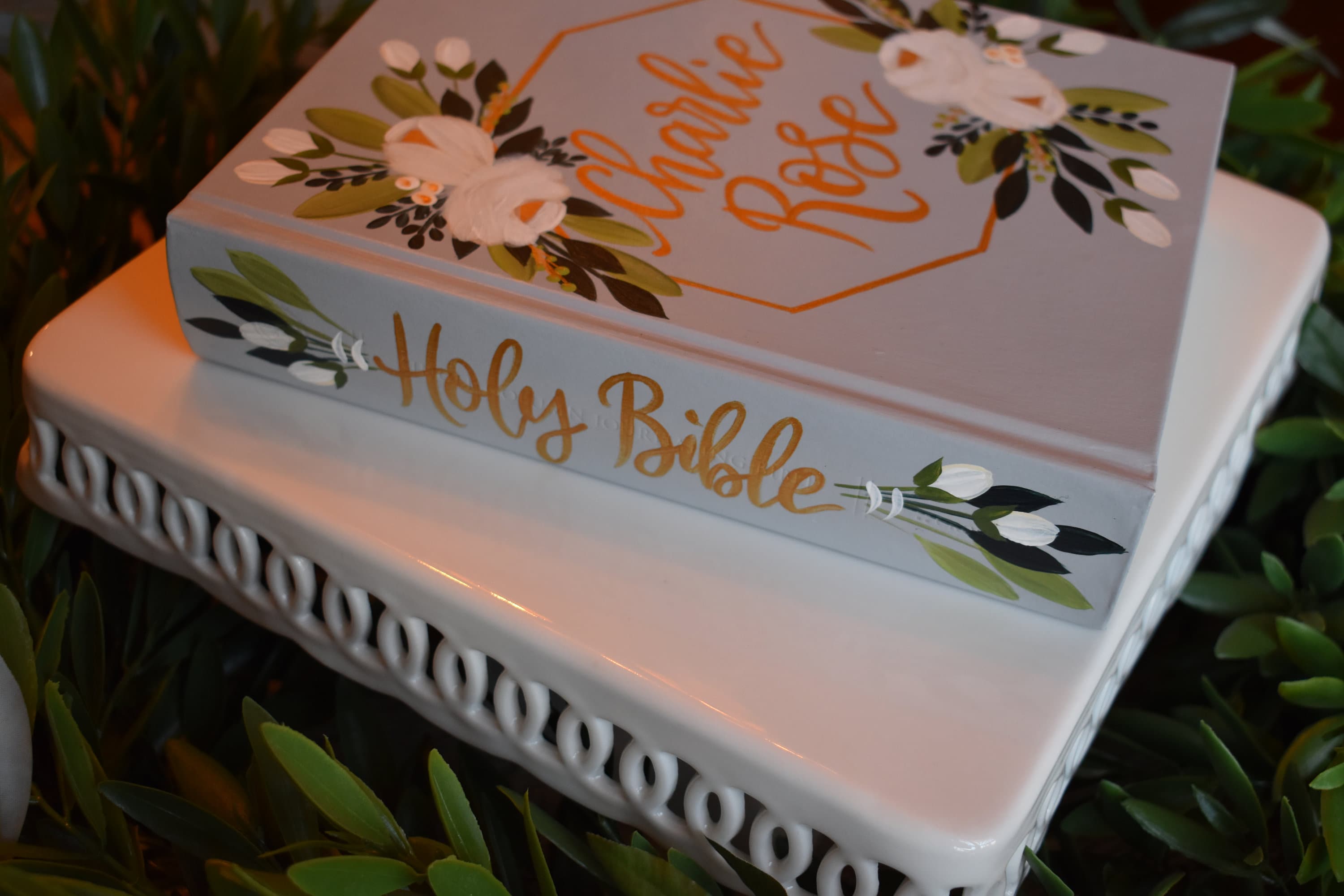 Unfortunately, I only sell the Bibles I carry in stock, and do not accept send-in Bibles. Without knowing the type of material on the Bible I can’t trust and promote the integrity of my product. I have found from experience that certain types of Bible covers do not accept paint well. Through trial and error I have fine-tuned my process and products to make sure that the Bibles made are of good quality.